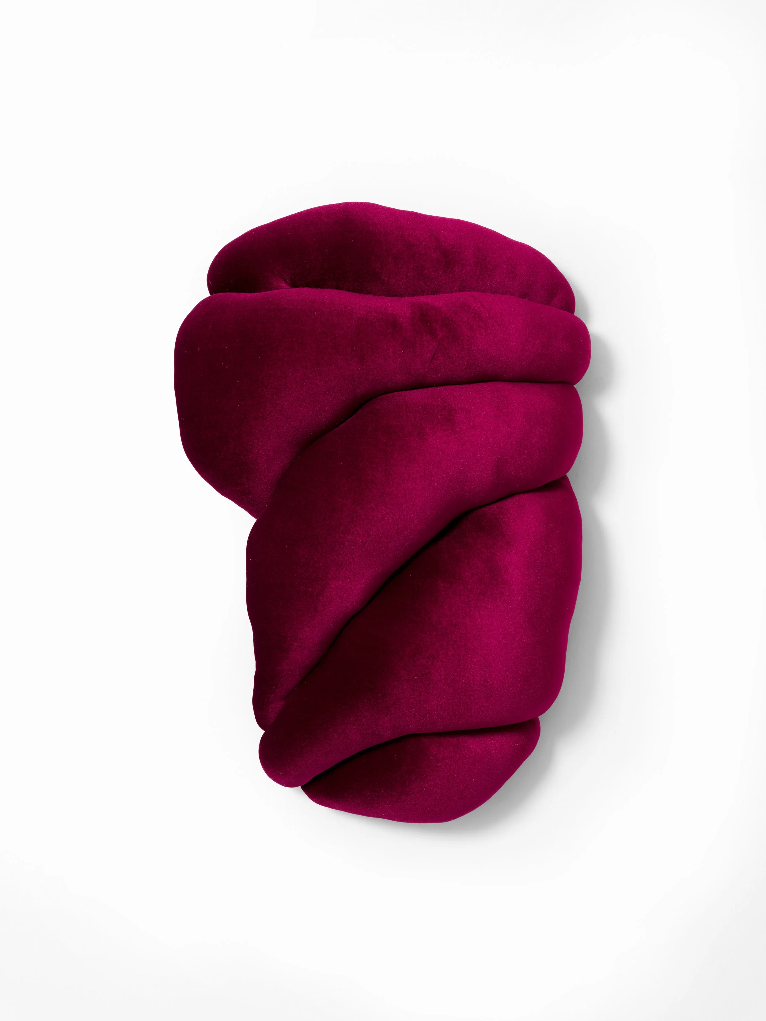 View fullsize   this very second forever  2025 Velvet and stuffing on custom shaped wood panel. 17 × 15 × 5 in.