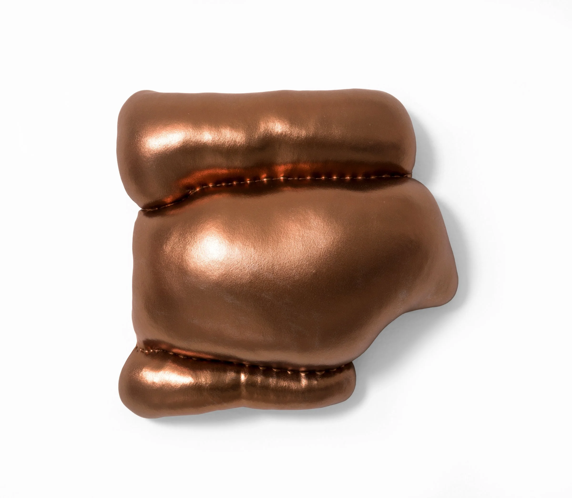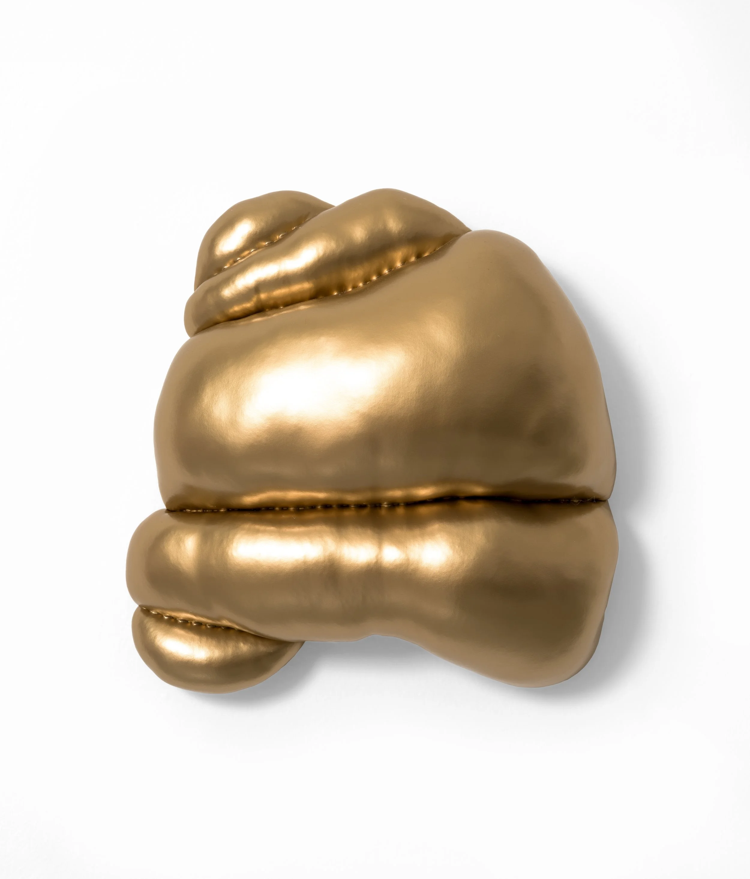 View fullsize   a few instants ago  2025 Fabric and stuffing on custom shaped wood panel. 12 × 14 × 5 in.