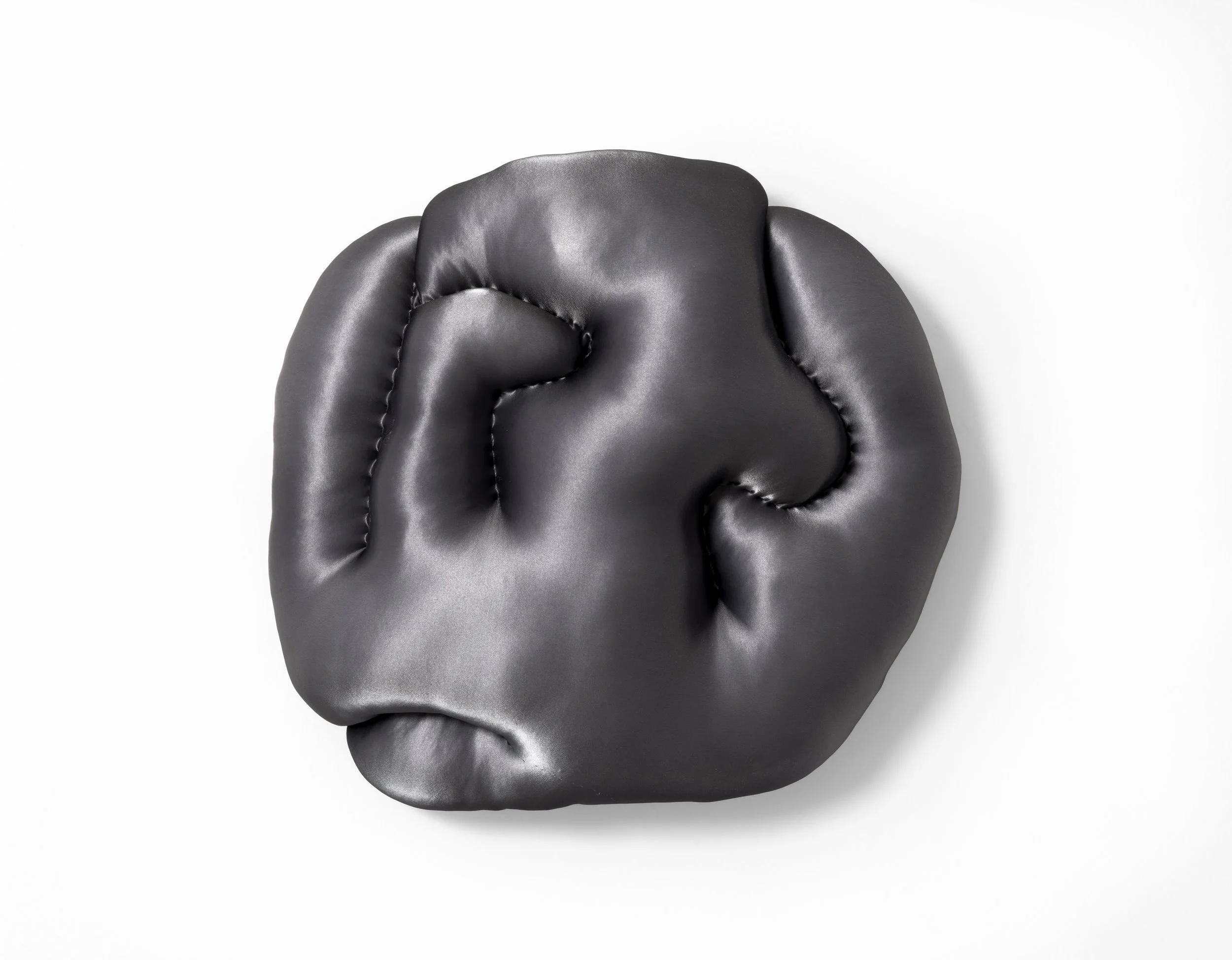 View fullsize   traces of the thought  2025 Fabric and stuffing on custom shaped wood panel. 12 × 17 × 5 in.